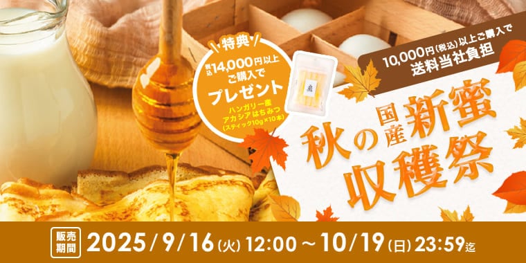 秋の国産新蜜収穫祭はこちらから>>秋の国産新蜜収穫祭キャンペーン開催中(9/16 12時-10/19)の詳細はこちら -