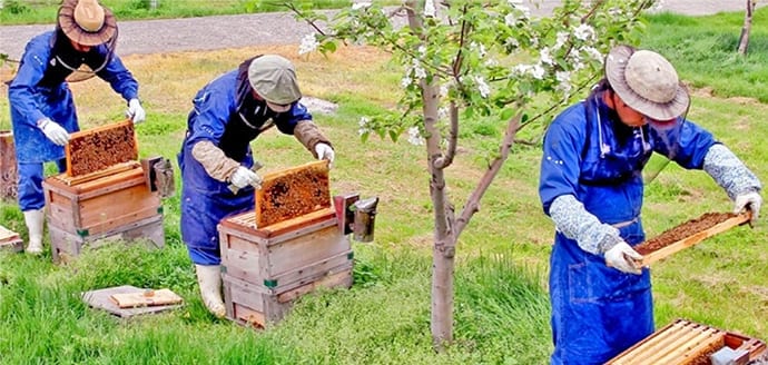 西澤養蜂場では、ミツバチの飼育からはちみつの生産、販売まで管理を自社で一貫して行なっています。そのため、全国4ヶ所の拠点も全て自分たちで管理し、農薬を使わない安全な土地ではちみつの収穫作業を行なっております。はちみつを安心して召し上がっていただくため、全ての管理を徹底し、丁寧な作業を心がけています。